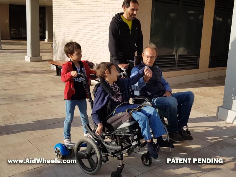 Une tu hoverboard a tu silla de ruedas con AidWheels y consigue la movilidad eléctrica adaptada con la que soñaste a un precio súper económico. Podrás pasear sillas de ruedas sin esfuerzo y es increiblemente fácil de manejar. También puedes usarlo con carros de reparto, sillitas de bebé, andadores o rollators y casi cualquier cosa con 4 ruedas.