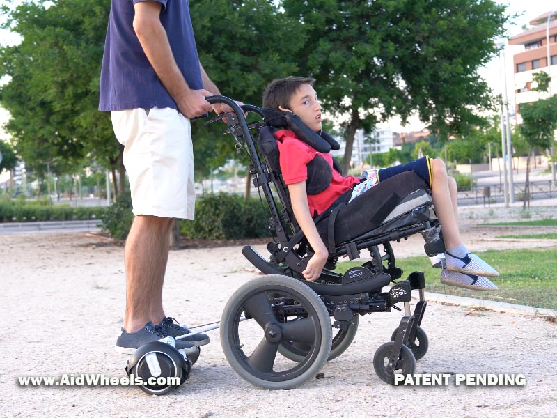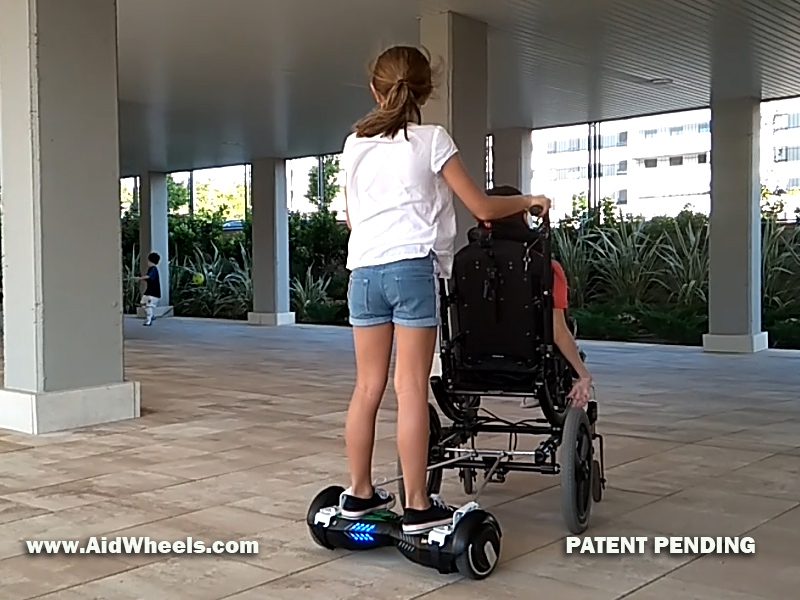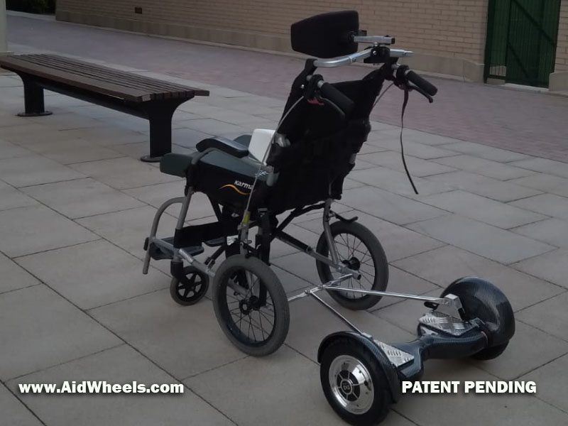 Unir silla de ruedas y hoverboard es muy sencillo con el Sistema AidWheels. Puede usarse con cualquier tipo o marca de sillas de ruedas manuales y usarlo sólo cuando quieres salir a pasear…